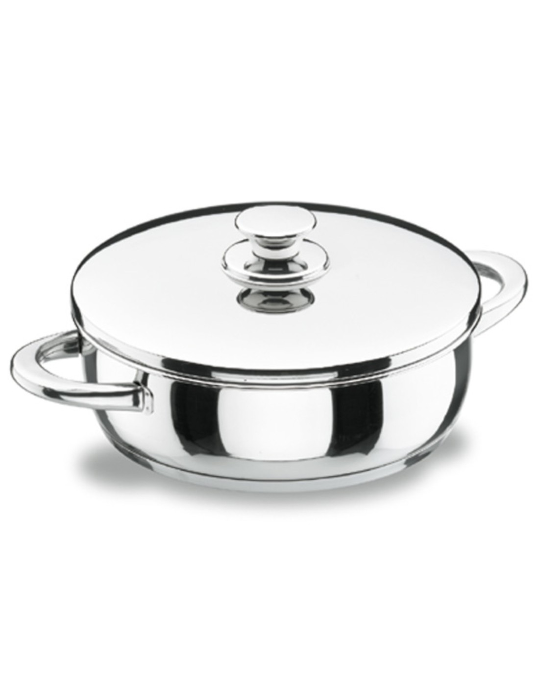 Toda la pieza (cuerpo, asas y mangos) fabricada en acero inoxidable 18/10.